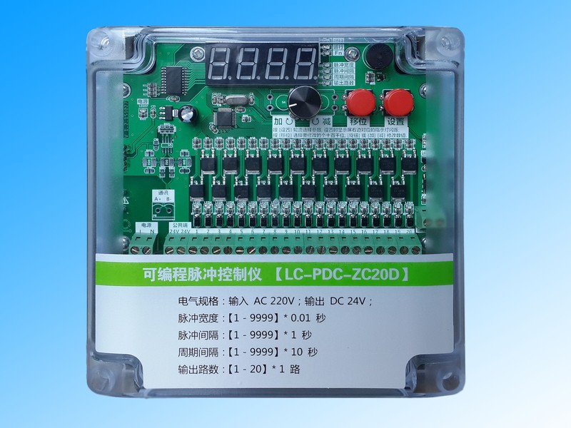 脈沖袋式除塵器控制儀 LC-PDC-ZC20D (在線式 20路 ),此款控制儀電壓有24V和220V兩款,購(gòu)買時(shí)請(qǐng)告知客服選用電壓,以免為您造成不必要的損失。此款脈沖控制儀輸出路數(shù)可調(diào),凡是所控脈沖閥數(shù)量為20個(gè)以下,全部可以使用。