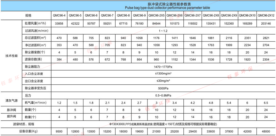 除塵清灰工作過(guò)程為:以一個(gè)袋為例,含塵氣體由進(jìn)口處直接進(jìn)入氣箱的袋室;由于有負(fù)壓風(fēng)機(jī)的引力驅(qū)動(dòng)作用,含塵氣體由外及里,自下而上,克服阻力,穿越濾袋到達(dá)上部箱體;粉塵就會(huì)被阻擋在濾器組件之外,小的顆粒被吸附在濾芯的表面,大的顆粒直接掉到下面的灰斗中;經(jīng)過(guò)過(guò)濾后的含有微塵的氣體在脈沖提升閥處匯集,之后從出風(fēng)口排出,此時(shí)便是干凈的氣體。過(guò)濾狀態(tài)就是對(duì)含塵氣體進(jìn)行除塵。當(dāng)過(guò)濾工作達(dá)到一定時(shí)間(或阻力達(dá)到預(yù)先設(shè)定值),清灰過(guò)程開始。其工作過(guò)程為:控制器發(fā)出信號(hào),使脈沖提升閥關(guān)閉,阻斷排氣;壓縮空氣脈沖閥開啟,以大于0.5MPa的壓縮空氣經(jīng)脈沖閥噴入凈氣室;并迅速膨脹入濾袋內(nèi),并產(chǎn)生振動(dòng)作用,清除濾袋外側(cè)表面上的粉塵,粉塵掉落到灰斗。這個(gè)動(dòng)作完成后(大約6~15s),壓縮空氣脈沖閥關(guān)閉,提升閥重新打開,該箱室的濾袋重新回到過(guò)濾狀態(tài)。