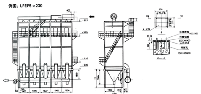 1、除塵器主機包括:箱體、灰斗、框架、樓臺、平梯、濾袋裝置,本體內(nèi)進、排風(fēng)管及反吹風(fēng)管道和機組本體內(nèi)的壓縮空氣管道裝置,及各管道上的電控氣動閥門及排灰閥。