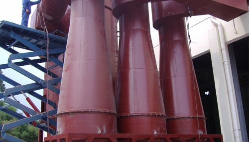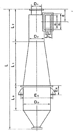 CLK擴(kuò)散式旋風(fēng)除塵器,適用于捕集干燥的非纖維性的顆粒狀粉塵,主要特點(diǎn)是筒身呈圓錐形,因而減少了含塵氣體自筒身中心短路到出口去的可能性,并裝有圓錐形的反射屏,防止兩次氣流將已經(jīng)分離下來的粉塵重新卷起,被上升氣流帶出,因而提高了除塵效率。