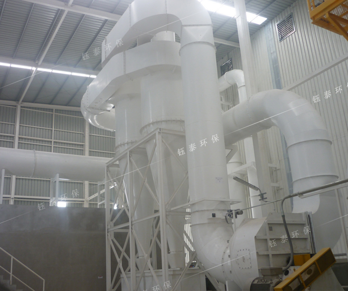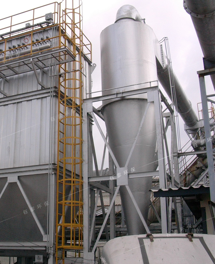 工業(yè)旋風(fēng)除塵器又稱旋風(fēng)過濾除塵器,主要用于去除廢氣中密度較大的非纖維性、非粘性顆粒??刹都酱笥?μm的粉塵,除塵效率50%~90%。因此,通常采用旋風(fēng)除塵器作為廢氣送入主除塵器收集細(xì)粉塵之前的初級收集器或預(yù)過濾器。由于旋風(fēng)除塵器殼體內(nèi)部幾乎沒有