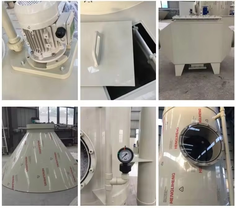 1.噴淋塔體的材料為不銹鋼,鋼板,聚丙烯和玻璃纖維,整體為無分段連接法蘭的纏繞圓柱圓柱體。具體結(jié)構(gòu)由壓力室、儲液罐、填料、噴淋裝置、消泡裝置等組成。