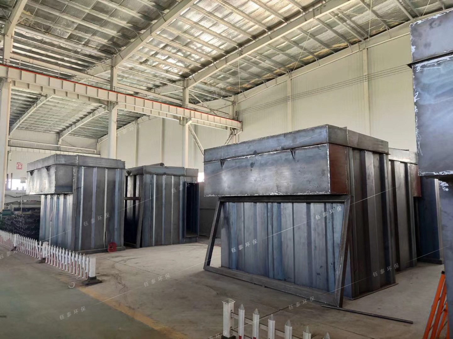 烘干 機除塵器將普通鋼板制成的花板換為不銹鋼材質(zhì)的,處理的濾袋選用氟美斯,骨架采用有機硅處理(或不銹鋼材質(zhì)制成)。除塵器內(nèi)部用環(huán)氧聚脂涂料經(jīng)過三層處理。外層用10公分厚的輕質(zhì)巖