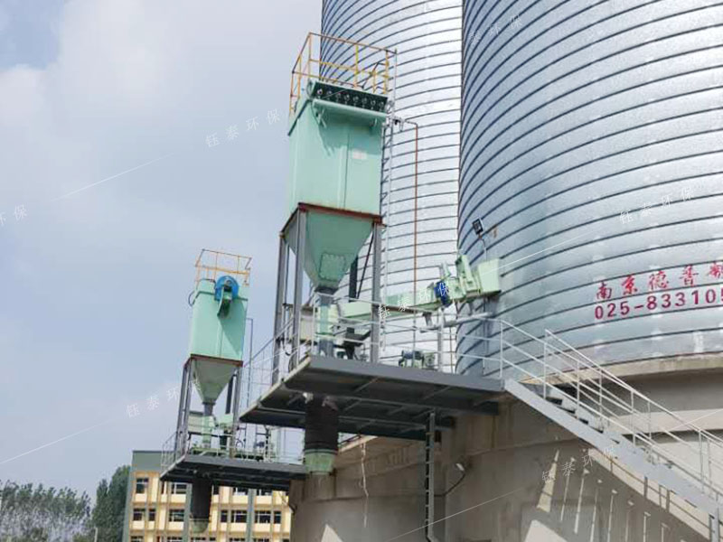 YSCB型散裝機自帶布袋除塵器,收塵后的粉料在罐車裝滿后經(jīng)脈沖清灰直接落入罐車內(nèi)。